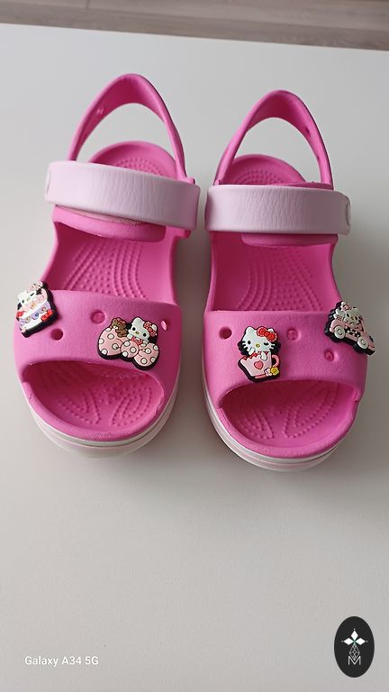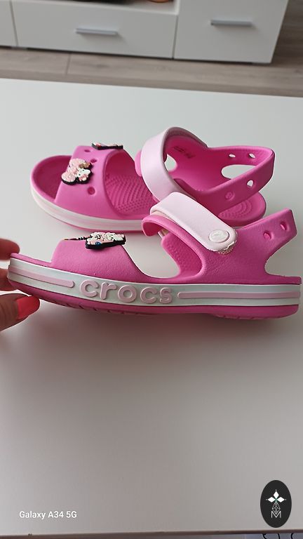 Pārdodu crocs iešļucenes. Izmērs C13, EU 30-31, iekšpēdas garums 19,1 cm. Apaviņos iepriekšeja pusē ir iestradatas gaismiņas, kuras sak mirgot kad bērns staiga. Viss darbojas.