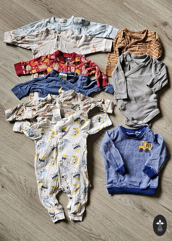 6gb H&M pidžaamas lukuga hõlpsam öiseks avamiseks + 1gb Lupilu kinniste jalgadega. Pärast 1 last, kahjustusi pole.