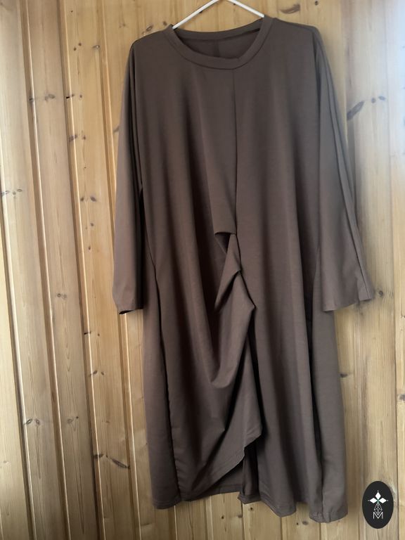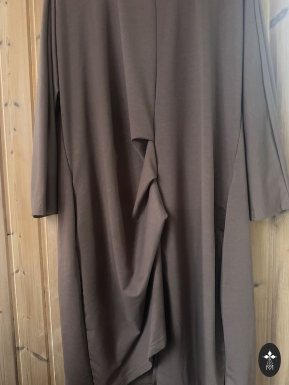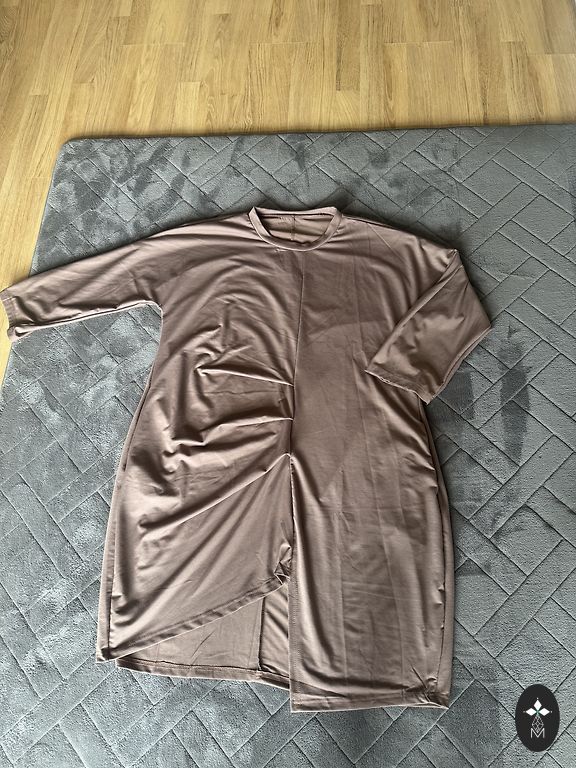 Eespool huvitav lõige. Pikkus 115. Kaenlaaluste ja puusade juures 55-58 cm.