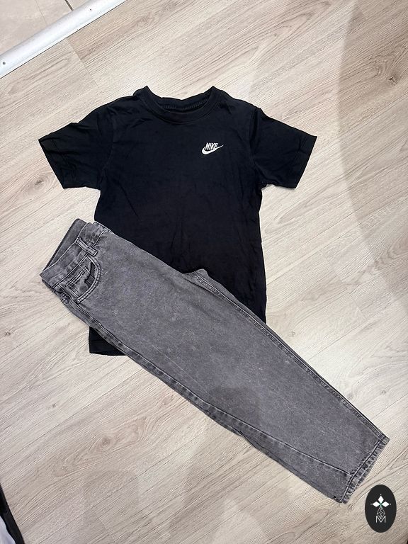 Sportinės kelnės iš 4F juosmens nesitempiant - 35,5 cm, ilgis - 84 cm, yra kišenės. Polo marškinėliai iš Reserved - pažastyse 53 cm, ilgis - 47 cm.