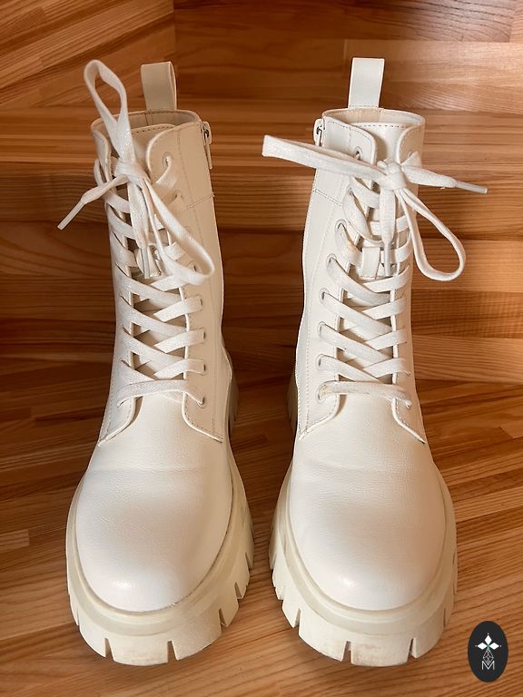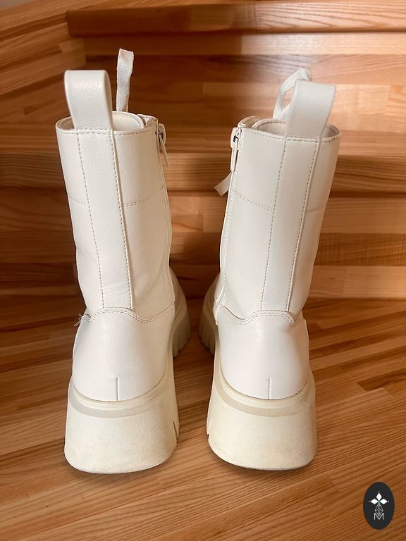 The boots appear unworn, but there are some slightly smudged areas.