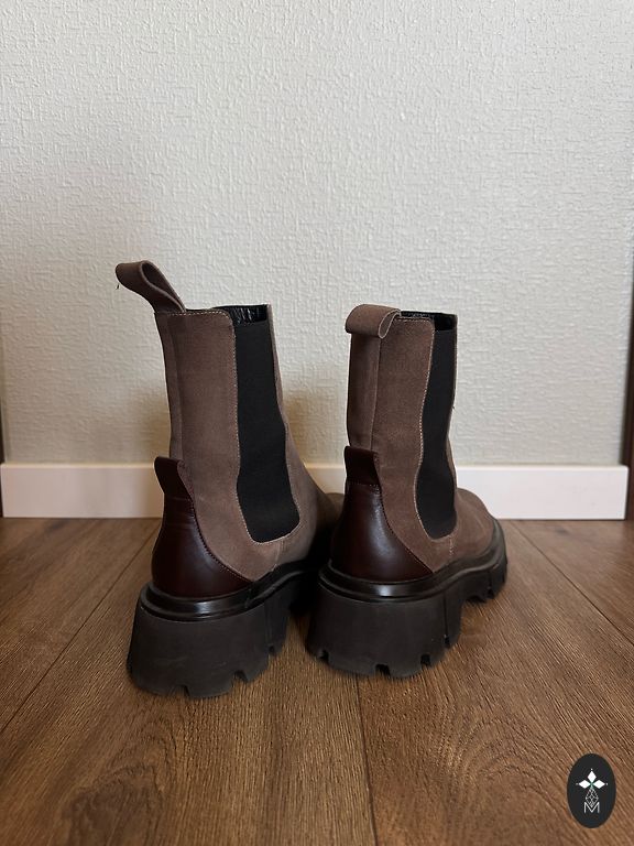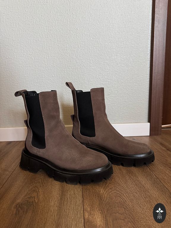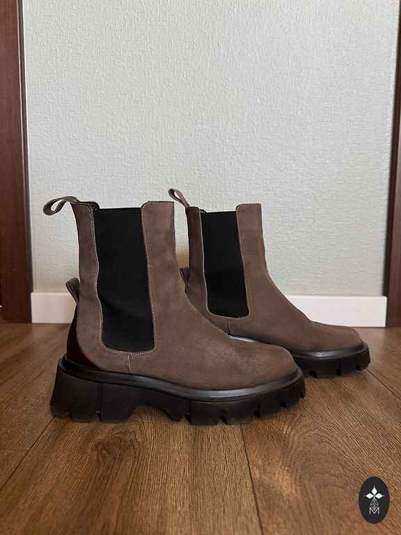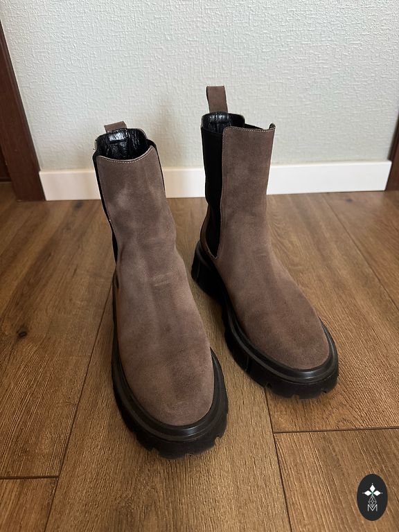 Коричневые замшевые короткие полусапоги 39 размера, 25 см. Носок специально обработан.