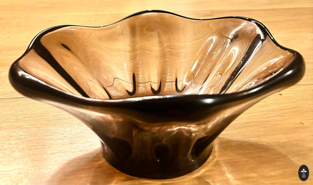 Išskirtinė didelė krištolinė dubenė/serviravimo lėkštė, kuri gražiai skaidrina šviesą iš visų kampų. Tai masyvi, sunki tikro krištolo dubenė – idealiai tinkanti kaip centrinis akcentas.