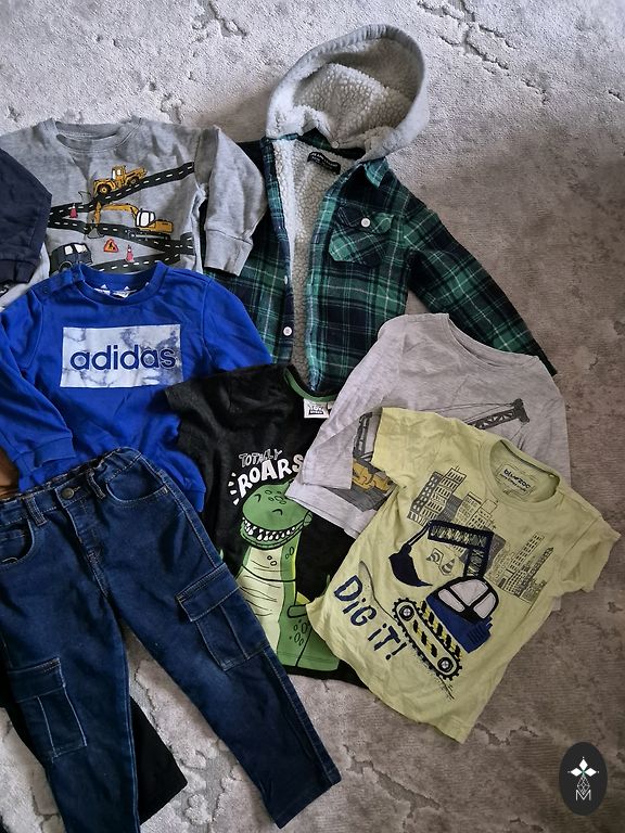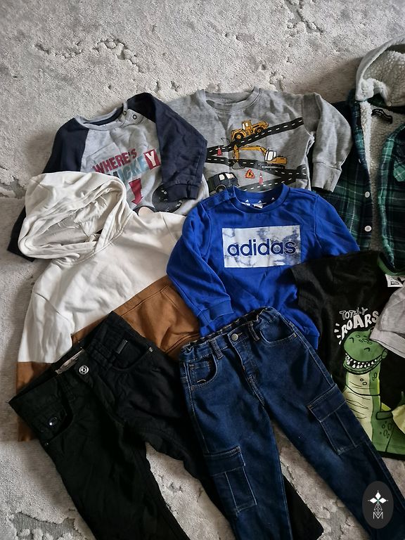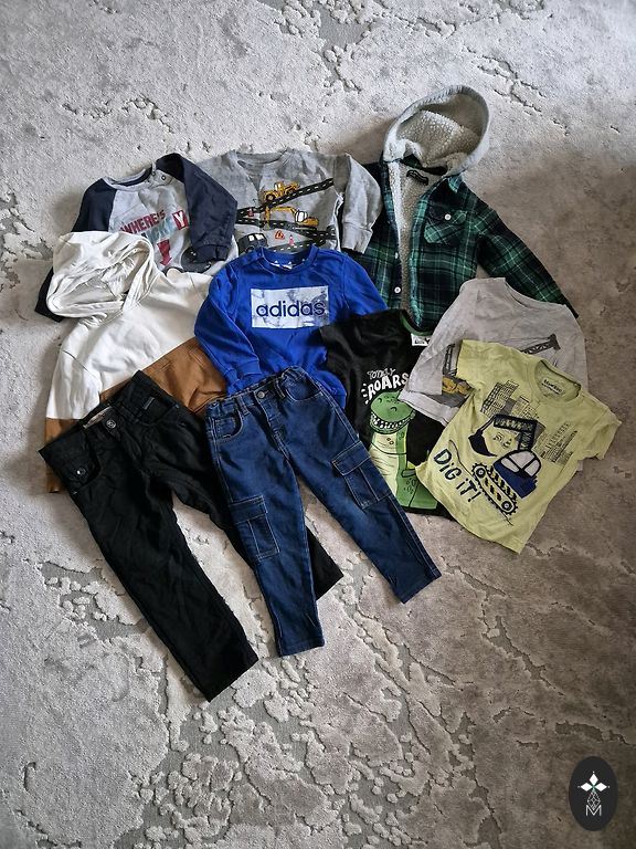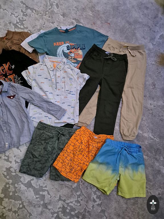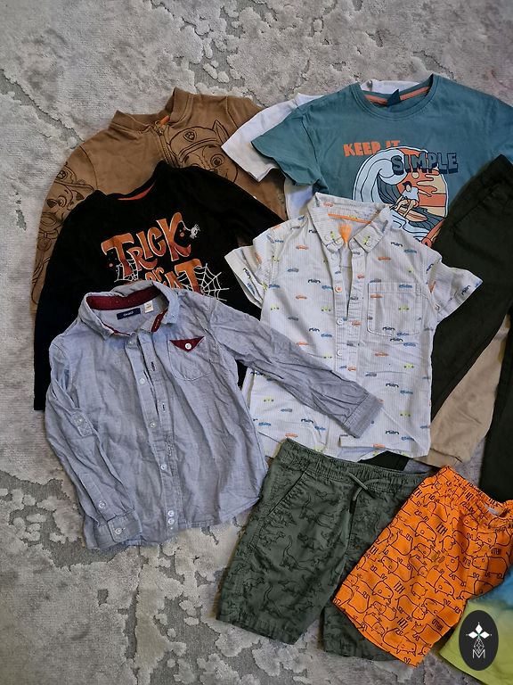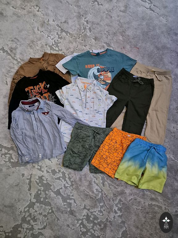 Set of 10 items in size 158, some clothes are slightly used and may have minor defects - signs of wear, some stains, or small holes. Various brands.