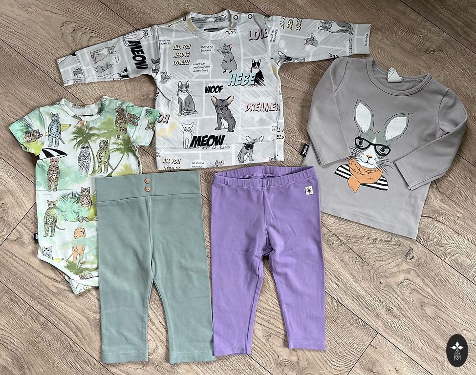 Varu papildus aizsūtīt vēl kādas bildes, ja ir interese. Kopumā ir kādas 100 vienības ar dažādiem bodijiem, rāpuļiem, biksēm, džemperiem, jakām. Klāt maisā ir cepurītes, zeķes, cimdiņi, zeķubikses (arī