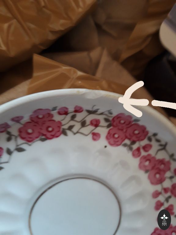 Deserta Šķīvjiem skrāpējumi, izskatās dēļ tā kad stāvējusi viens uz otra tieši tajās vietās. Arī daži melnie punktiņi. Tējas kanna bez defektiem. 1 melns punktiņš. Līdzi varu iedod vēl apakš tases 4gb, bet katrai pa mazam atsitums. Deserta Šķīvjiem arī švīkas izteiktākas. Bet tas ja nepieciešams. Sūtu.