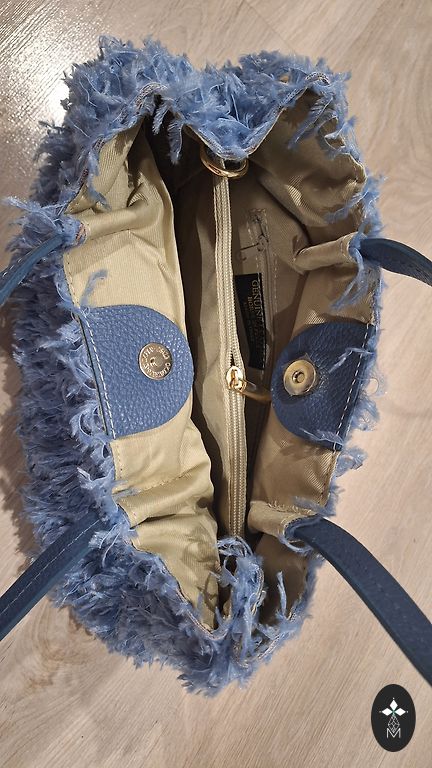 Сумка уже год стоит в шкафу, поэтому у нее есть следы хранения, которые видны на фотографиях. Она новая, ни разу не использовалась. В комплекте также идут длинные ремни.