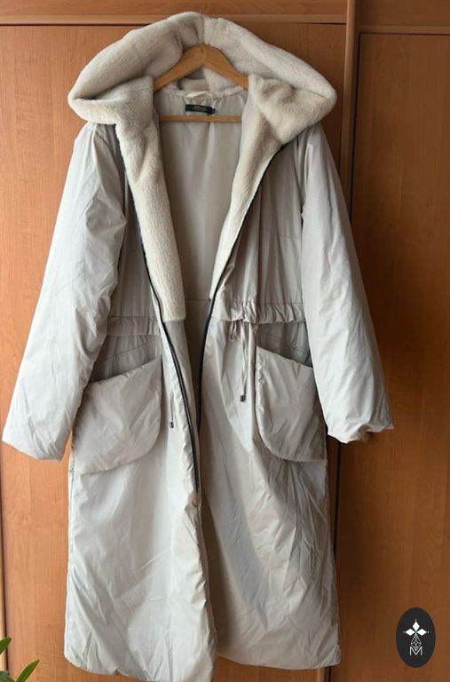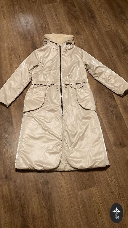 Хорошее пальто, значительных дефектов нет, внутри подкладка. Подойдет для размера S/M.