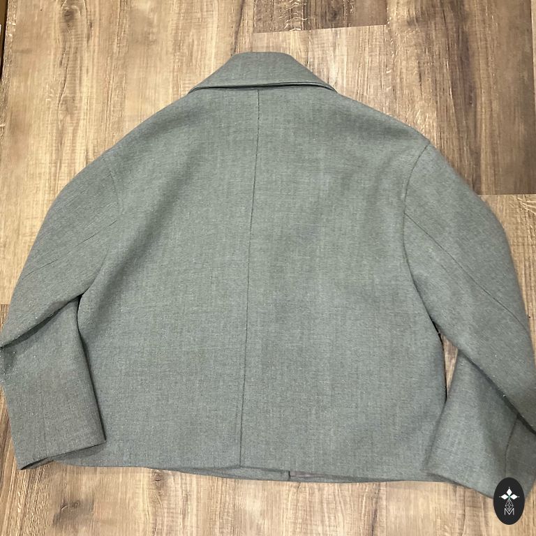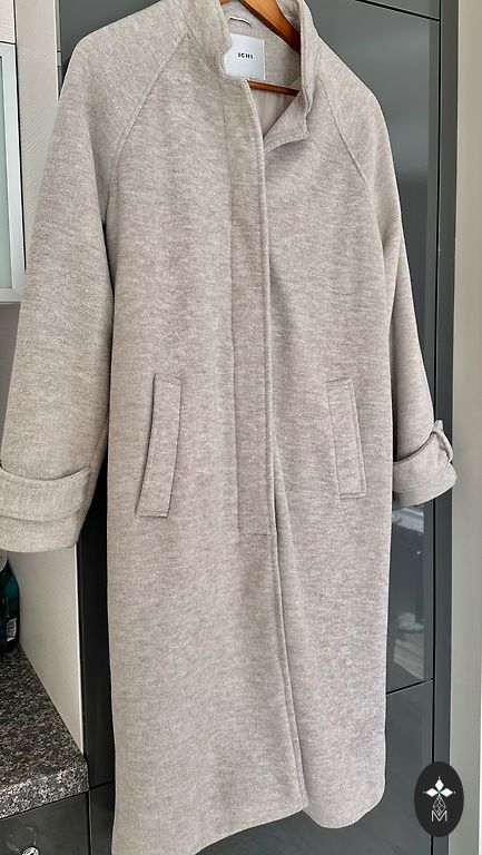 Pelēks mētelis līdz ceļiem, labi saglabā formu, dziļas kabatas, silts, ar oderi, pavasaris-rudens, uzvilkts vairākas reizes, lieliskā stāvoklī.