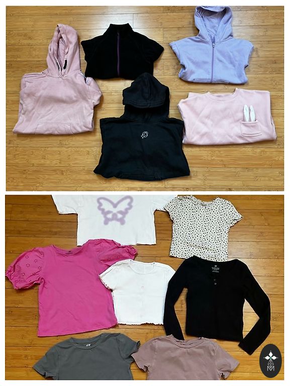 Bikses, krekliņš un kleitiņa no pepco uz 104 izm. Un vējjaka no Seven Lemon 110.izm. Jakai nelieli plekisi loti bāli un uz aci nevar pamanit, iespejams var izmazgat neesmu centusies to izdarit.cena par visām precēm kopā.