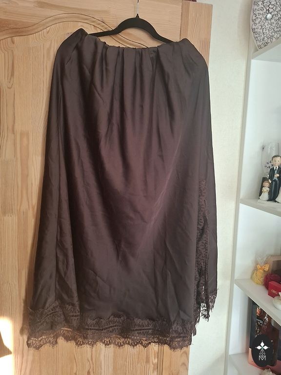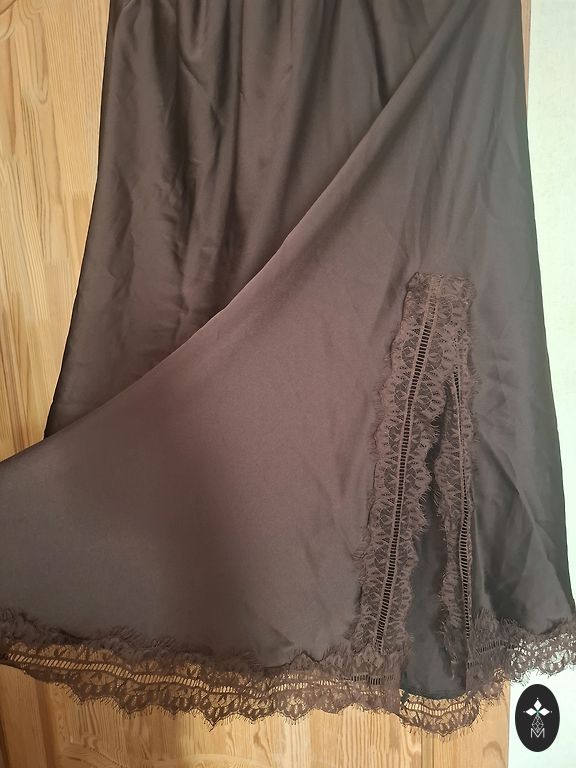 Brūni atlasa svārki ar mežgini