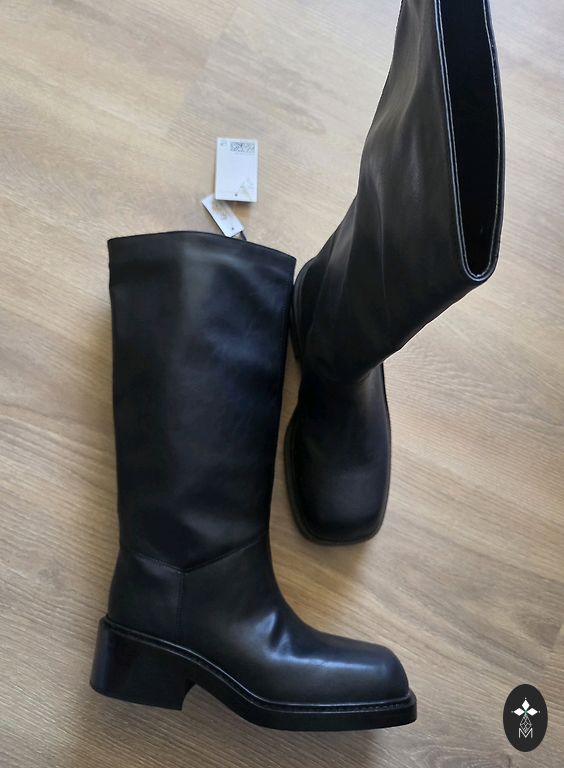 Rasked materjalist püksid, millel on kena langus. Pükstel on taskud ja külgedel peidetud tõmblukk. Suurus on märgitud 46, kuid sobib paremini 42 ja väikesele 44 suurusele. Värv on must.