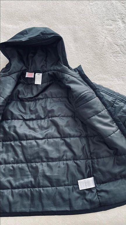 Size L (13-14 years). Width 104cm, length 65cm. The only defect is shown in the last picture - the edge of the letter sticker has come off.