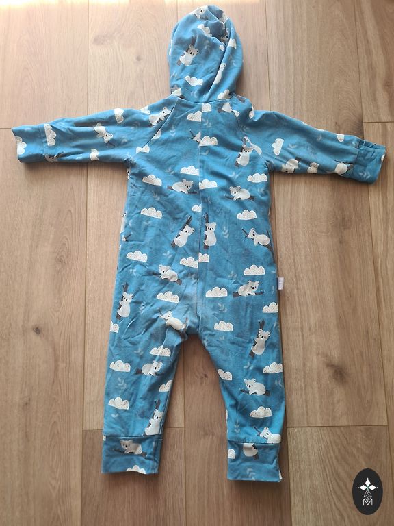 Водонепроницаемый дождевой комплект Didrikson. Указанный размер 100, лучше подойдет немного большему ребенку. Единственные дефекты видны на фотографиях - небольшое пятно на брюках и немного отклеившийся светоотражатель.