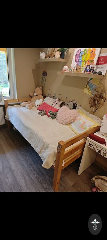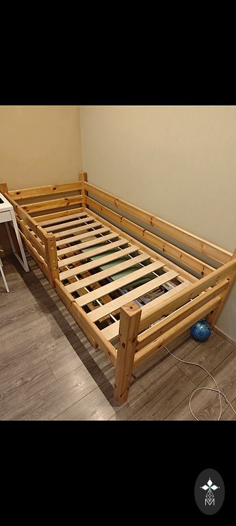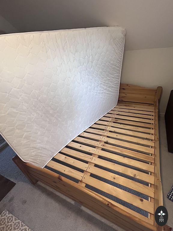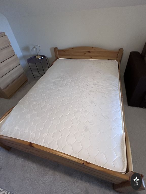Medinė lova su čiužiniu ir patalynės dėže 140×200. Savarankiškas išvežimas.