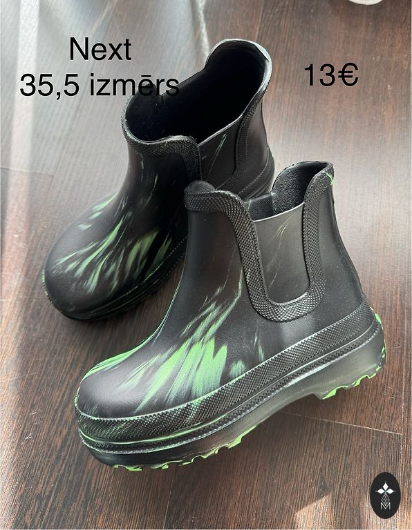 🌦️Gaiši zaļi gumijas zābaciņi ar tekstila oderi bez siltinājuma siltajai sezonai. Valkājis viens bērniņš vienu sezonu.