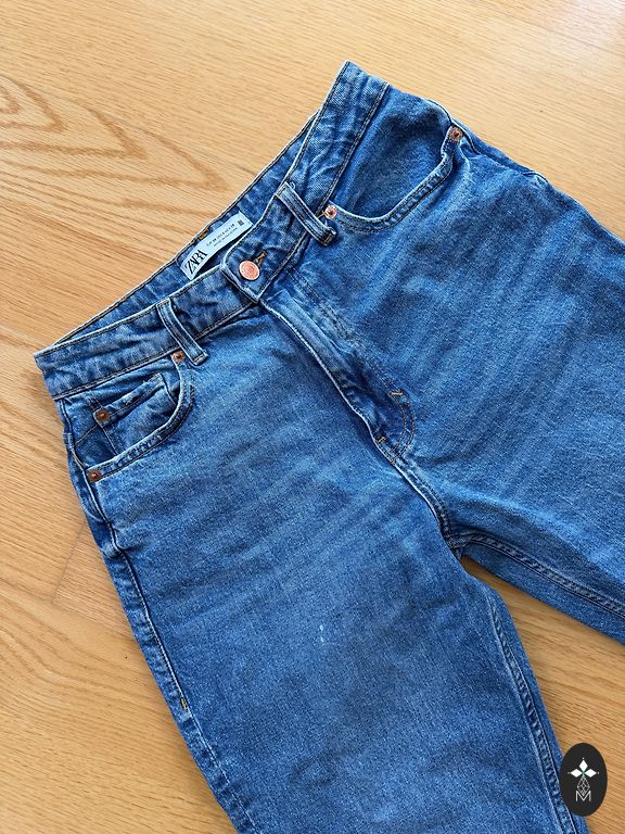 Džinsi meitenei ar izšuvumu un rhinestones, zema jostasvieta.