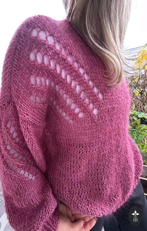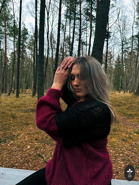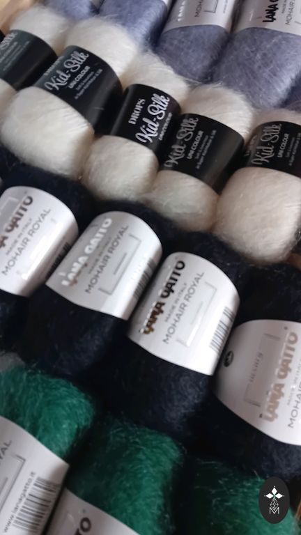 75% mohair, silk, fits from XS to M size.
