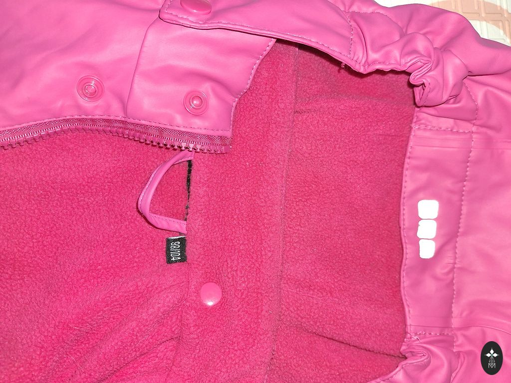 Lightly lined, adjustable at the waist with two pockets. The jumpsuit is suitable for cold spring and autumn. Wind and waterproof! Temperature approx. +5 to -10 ° There are minor defects (see photo), stains that could not be washed out on one sleeve, and a slightly bitten collar edge, but it will certainly not interfere with use. No holes.