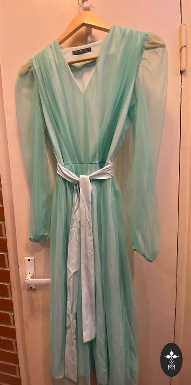48% хлопок, 48% модал, 4% эластан. Длина 117 см, ширина в талии 45 см (но платье тянется по мере необходимости). Надето 2 раза.