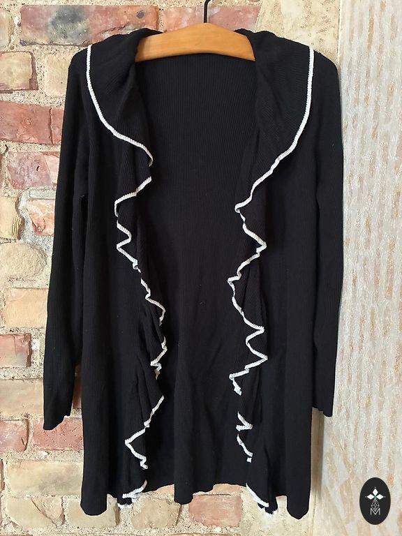 Стильный свитер Tommy Hilfiger из 100% хлопка размера M с вязаным воланом по нижнему краю и слегка удлиненной спинкой, создающий эффект стройной фигуры.