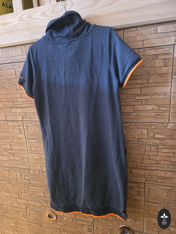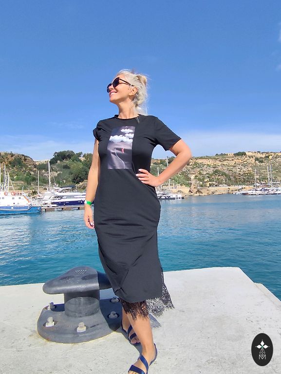Dress thin, airy, tied with a belt. The edges of the dress have ruffles.