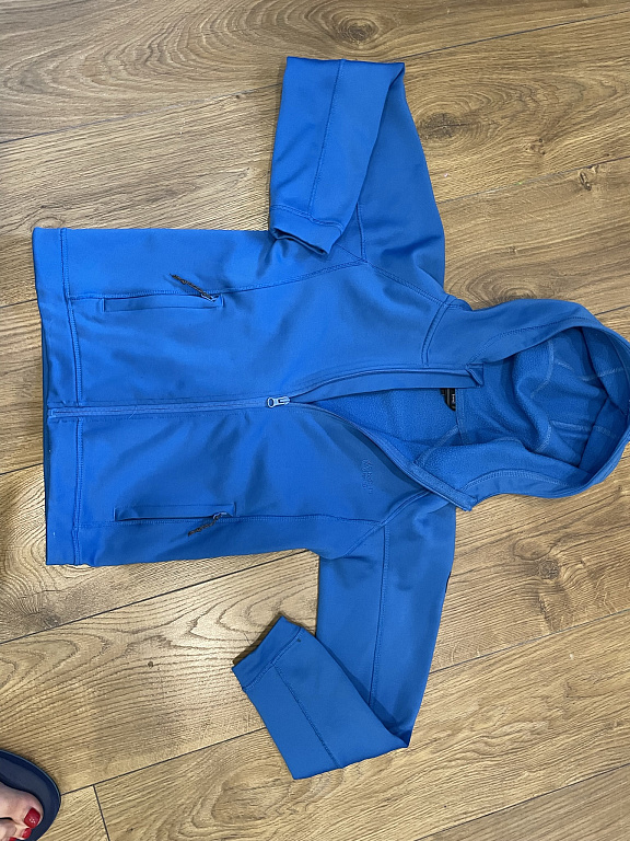 Blue children's riding competition jacket, labeled size 152, but actually size 134-140.