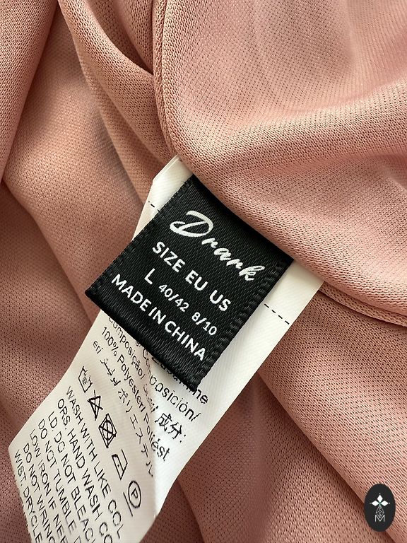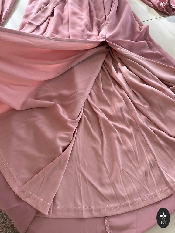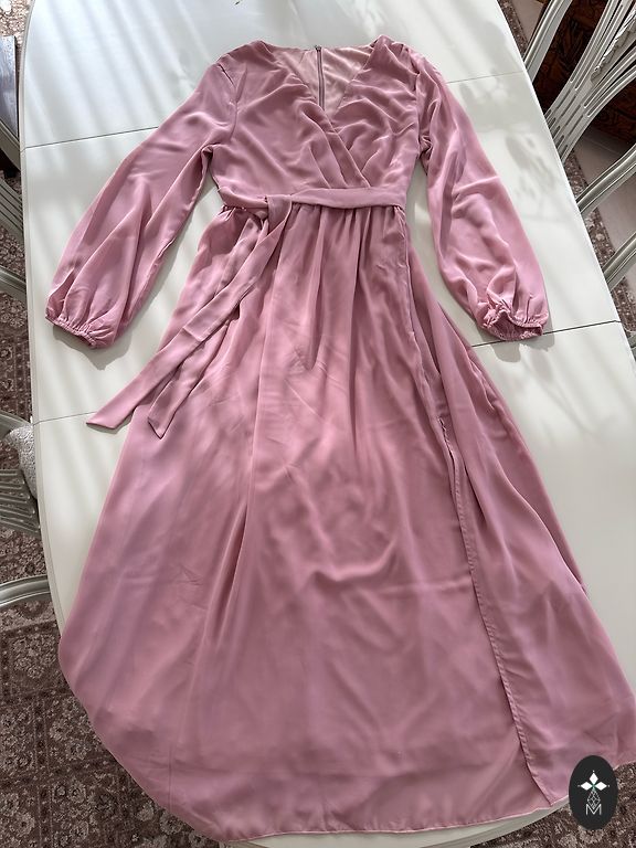 Length 133 cm, chest 106 cm, pleated, color powder pink