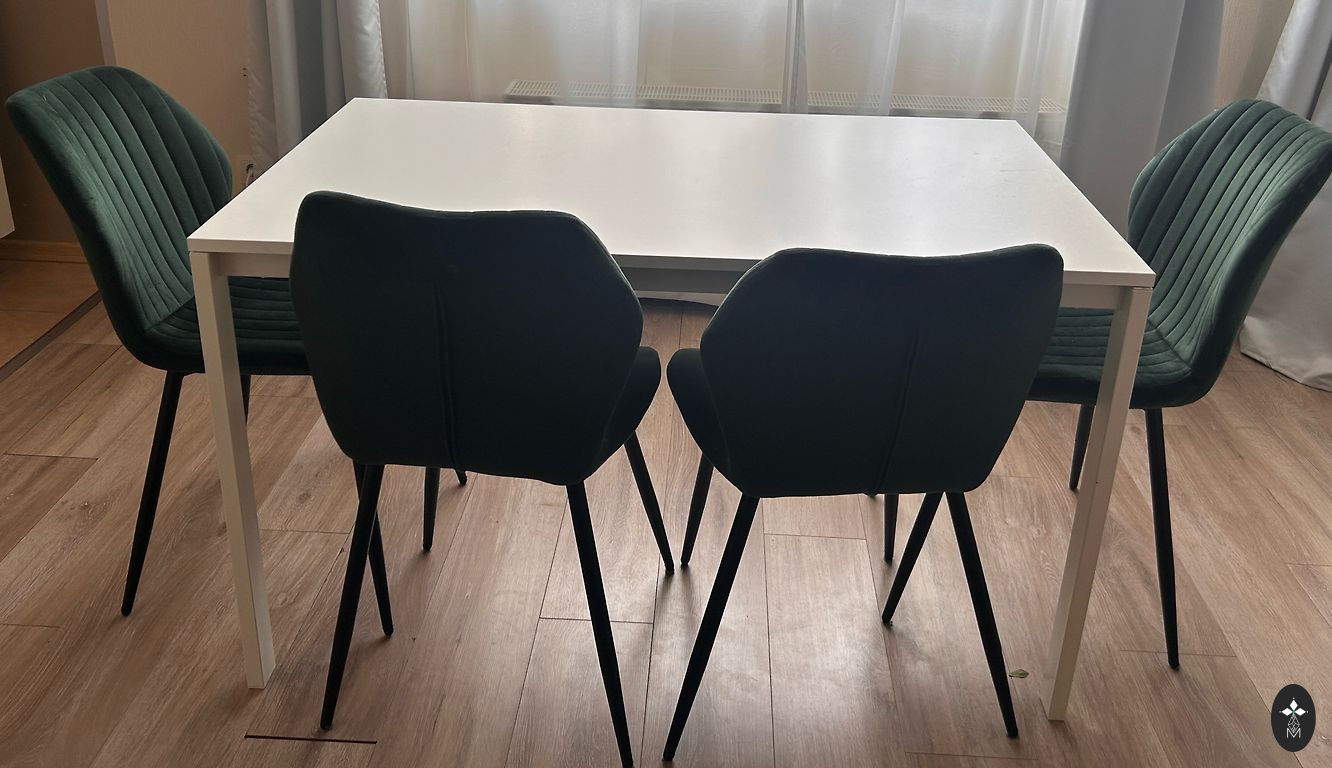 Naudotas vaikų rašomojo stalo ir kėdės komplektas - abu reguliuojamo aukščio. Yra Rygoje, Jugloje.