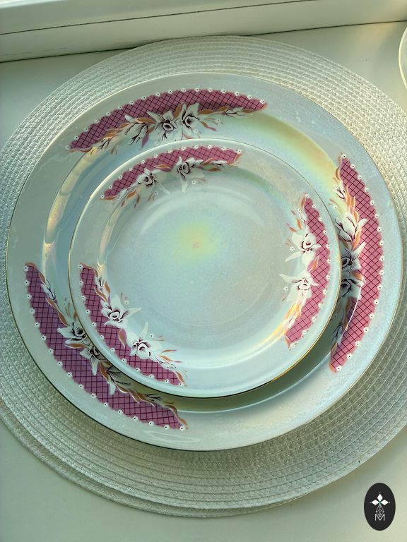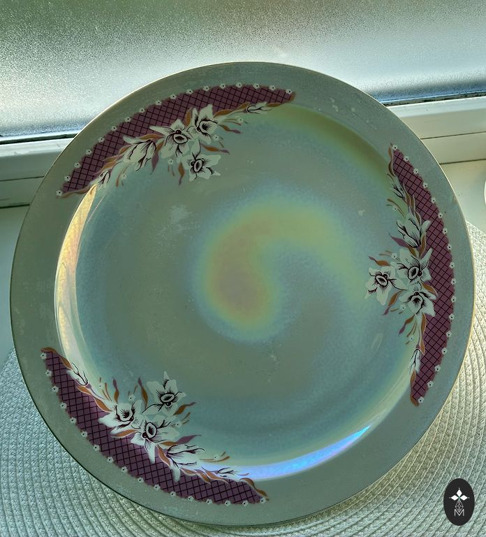 See on vintage portselanist taldrik pitsilise (võrgulise) äärega ja lillemustriga, valmistatud Porcelana Schmidt poolt Brasiiliast.