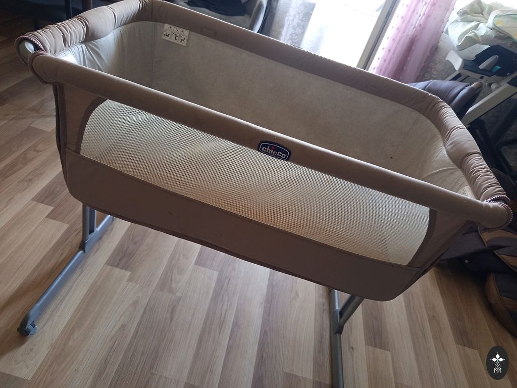 Кроватка в хорошем состоянии, есть небольшой дефект, что извбражон на фото (след от утюга), но под простыню будет не видно, все съемнон, стирается. Одна сторона кроватки опускается