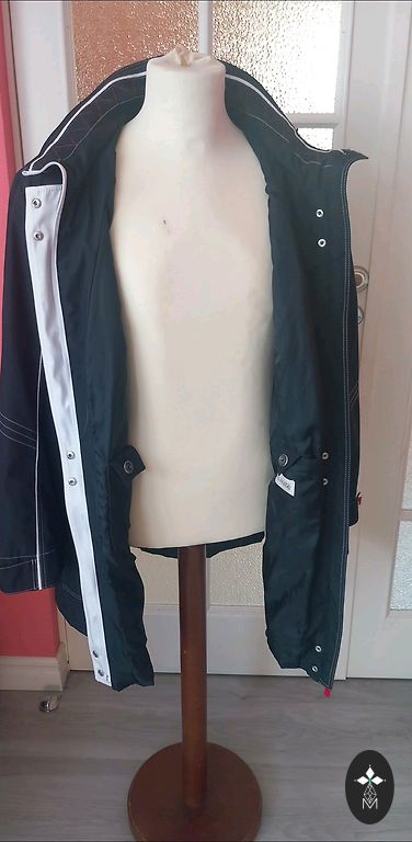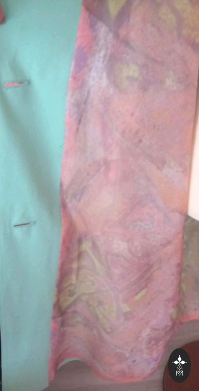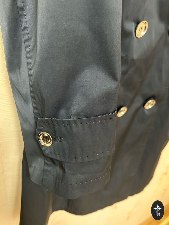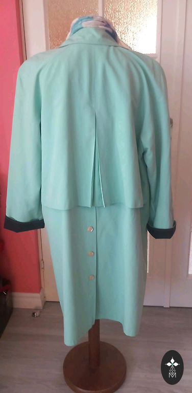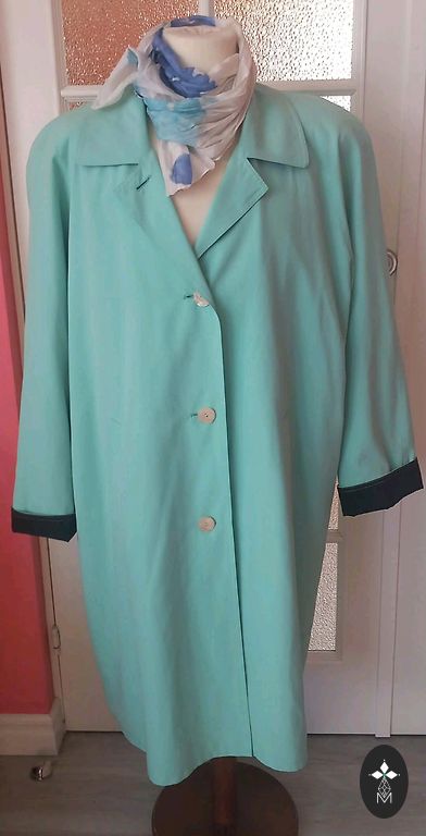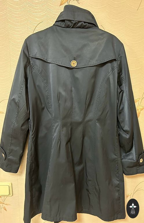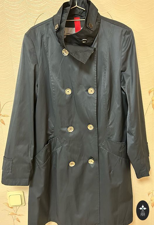 Spring, summer trench coat with a thin lining. Side pockets with buttons, closes with buttons, has a belt. One inner pocket. Light, comfortable, and high-quality. Size L. Size 48/50. Length 76 cm.