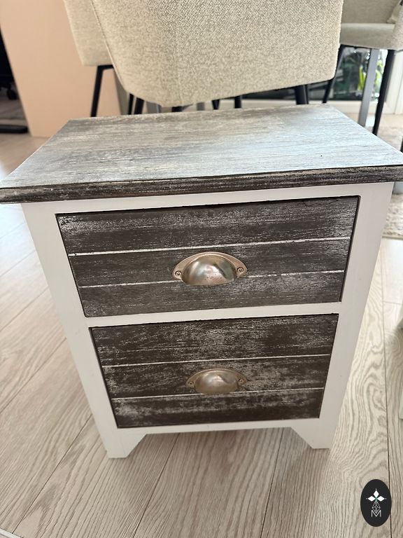 Cabinet with wheels that can be sat on. Two drawers. Lockable, only the lock cylinder needs to be replaced. Depth 60cm Width 30cm Height without padding (removable) 56cm. Height with seat padding 60cm.