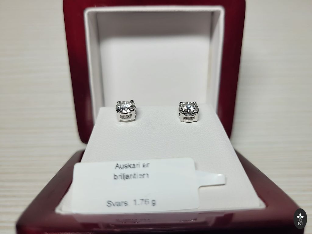 Gold earrings with diamonds.