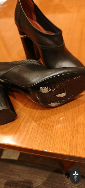 Heel height 9 cm. Signs of use are visible, but overall in good condition. Shipping is covered by the buyer.