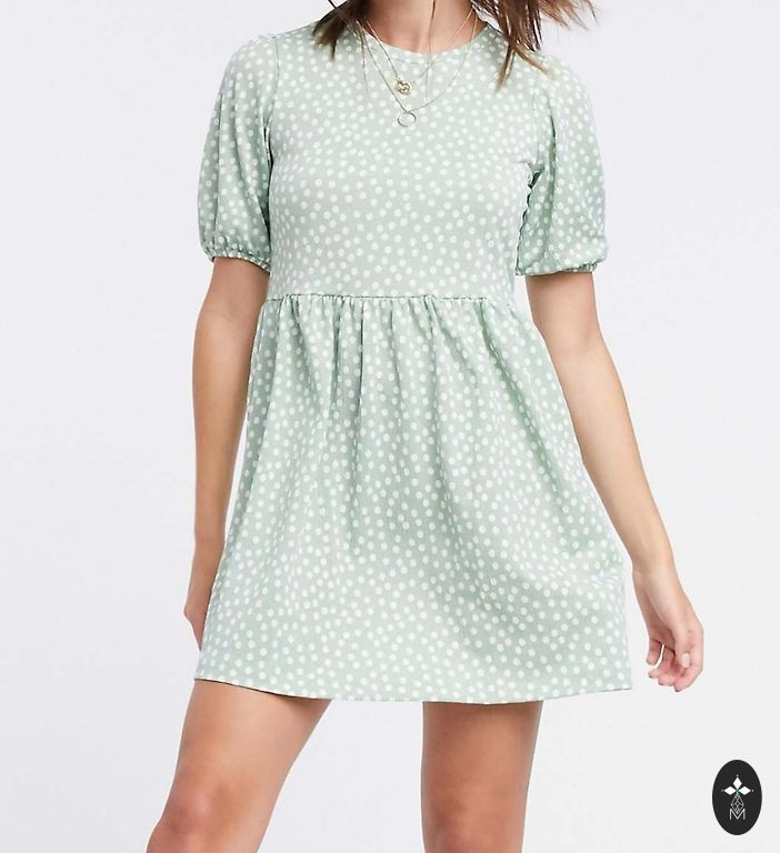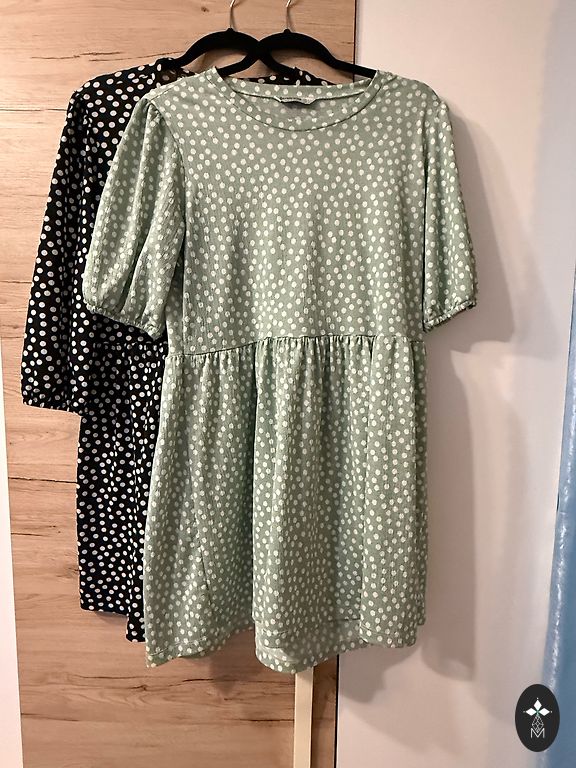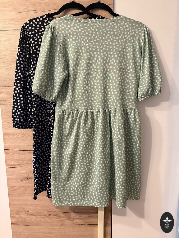 Kleita tiek pārdota bez jostas — iespējams ielikt jebkuru pēc izvēles. Pēc izgludināšanas būs kā jauna ! Mini kleita, izmērs - S. Piparmētras krāsā.