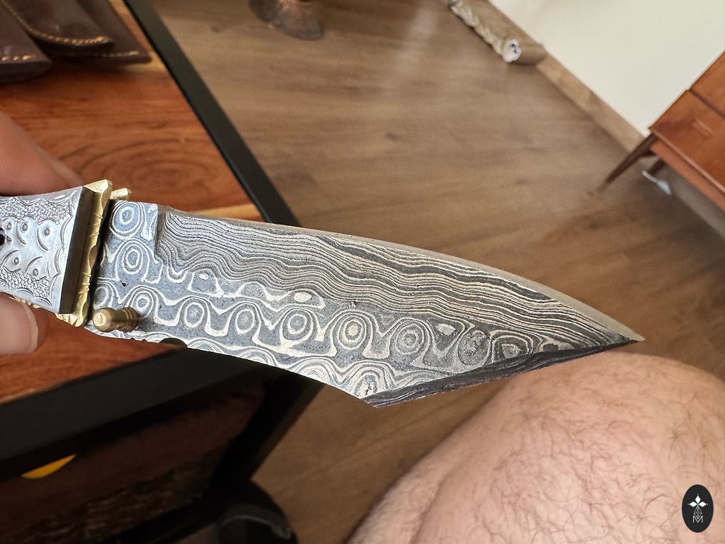 Šis cirvis tika izkalts augstākās klases meistara Pakistānā. Pārdodu savu personīgo nažu un cirvju kolekciju. Pilnīgi roku darbs.