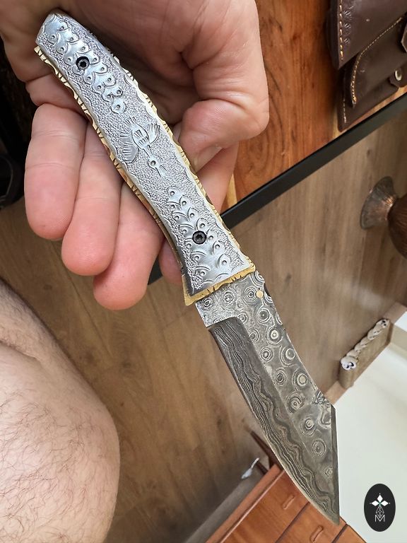 Pārdodu oriģinālu rokas cirvi ādas makā. Izgatavots no kalta tērauda ar augstu oglekļa saturu un ar augstas kvalitātes gravējumu uz metāla un koka. Cena apspriežama.