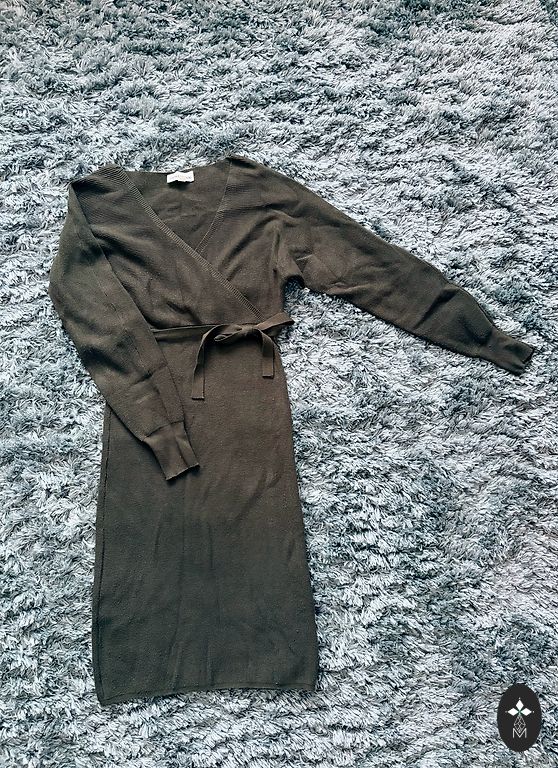 Vasarinė chaki suknelė su lino priemaiša, gale suknelę galima surišti tiek, kiek reikia. S dydis.