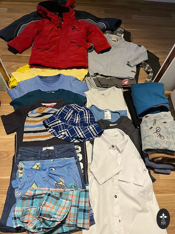 Selling a cool and stylish spring set. Sinsay blue jacket is new, HM softshell jacket and colorful Kiki jacket. Will fit from 122-128cm.