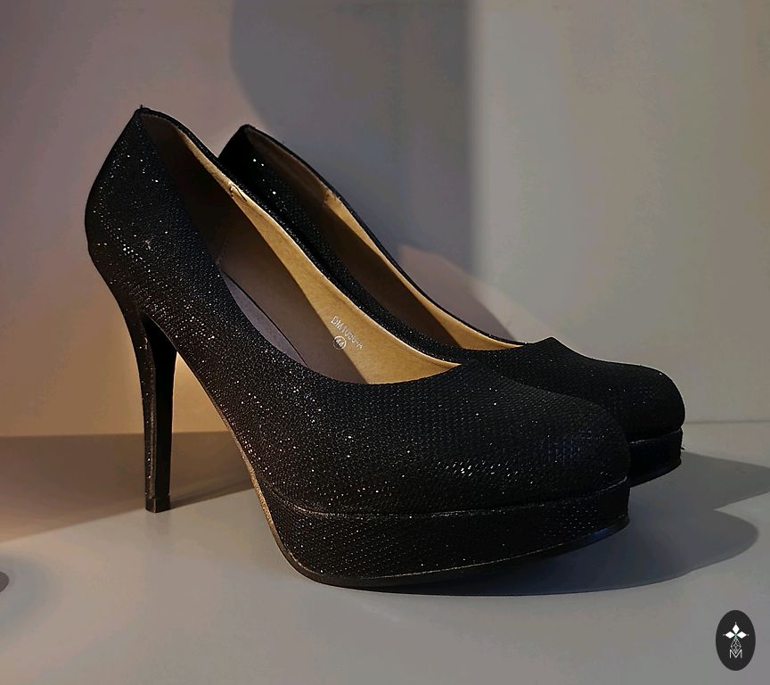 Shiny high-heeled shoes