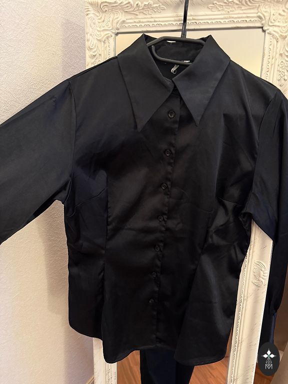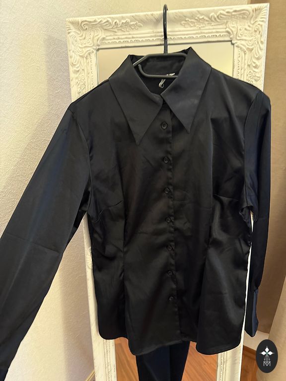Dirbtinės odos marškinėliai. Dydis 20. Krūtinės apimtis 116 cm, išsitempia iki 130 cm. Marškinėlių apačia kaip raukinys. Ilgis 69 cm.