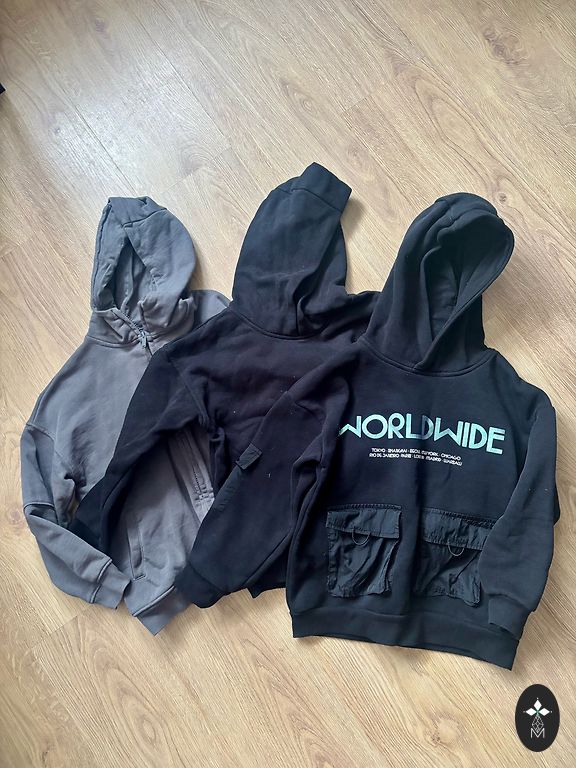 Selling new black trousers from Reserved, never worn, size 140 but the waist is for a slimmer boy, didn't fit us, only tried on, and the second pair is size 134 from Reserved in good condition.