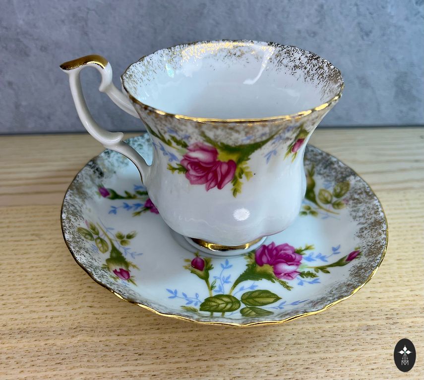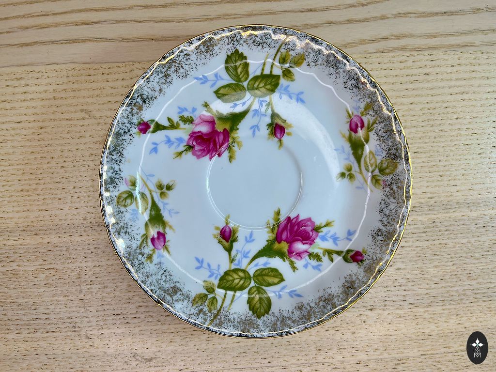 цветочных элементов и ручным золочением по краю и ручке.