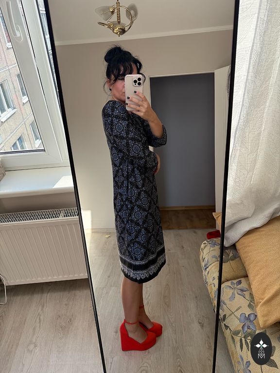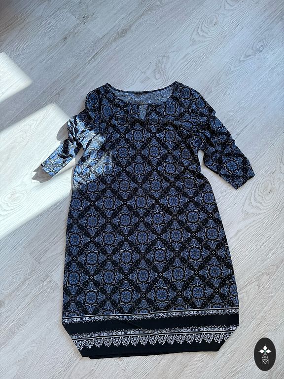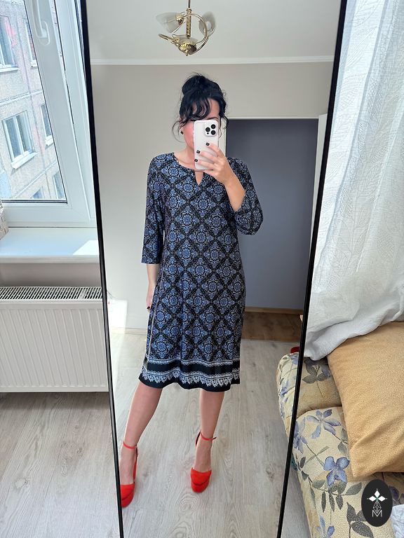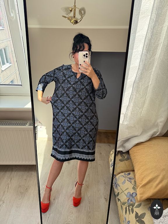 Jauka kleita vasarai, krūtįs 144 cm.piedurkne 52 cm.garums aizmugurĕ 117 .priekšpusĕ 113 cm., sānos mazi ṣ̌ķėlumi .+ sůtīṣ̌ana.