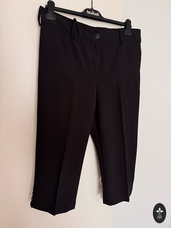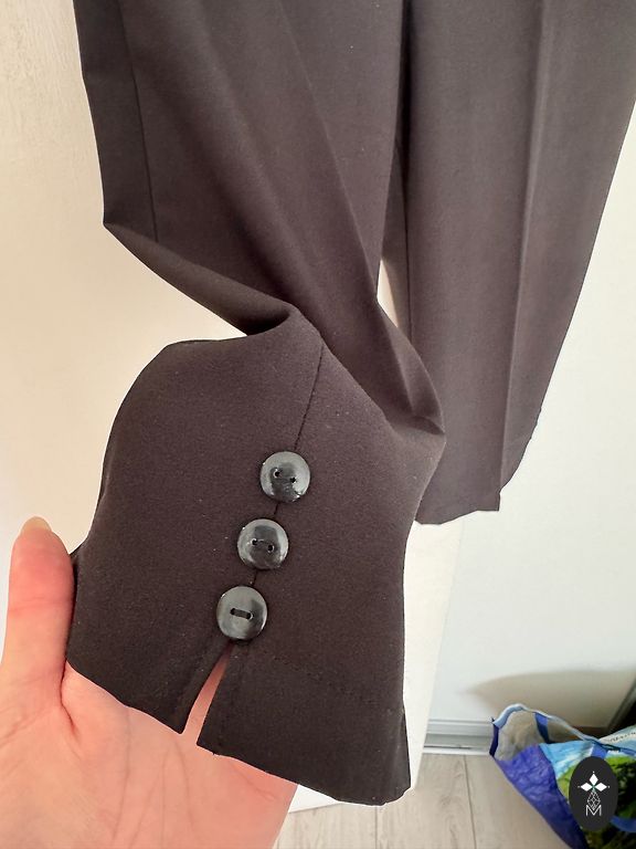 Bikses ir ļoti skaistā krāsā, pieguļošas, bet nedaudz stiepjas. Ir neliels defekts. Viena josta ir norauta (redzams 2. foto), viss pārējais ir labā stāvoklī. Garums 90 cm, jostasvieta 42 cm, platums 48 cm.