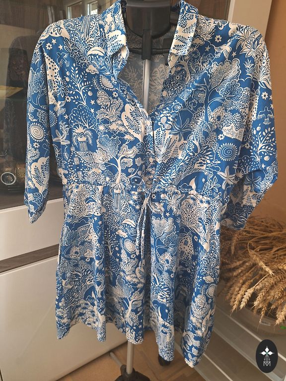 Tiny Bunny kokvilnas kleita🩵 Izmērs XS, bet var derēt arī S, jo ir brīva, ērta, sasienama un augumam pielāgojama. Ir viegla un ērta.