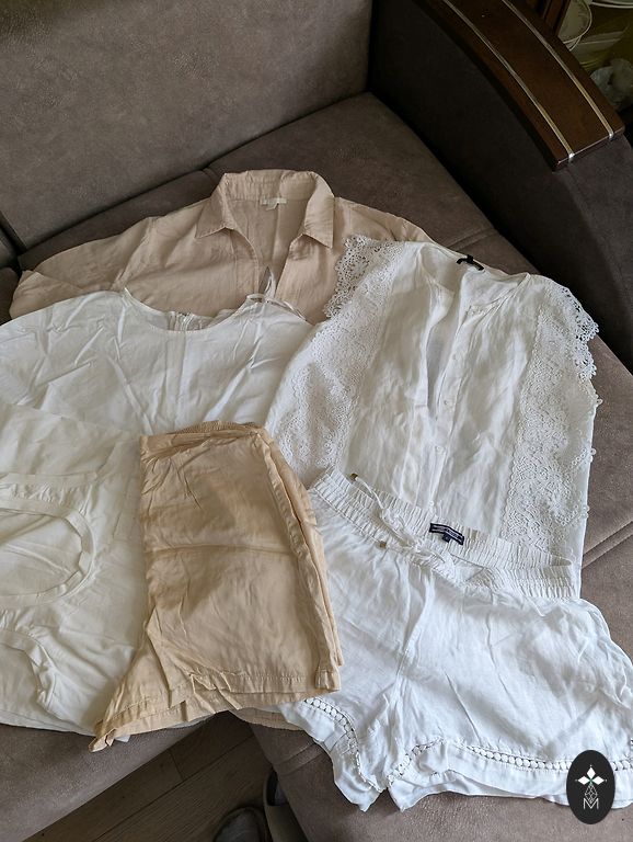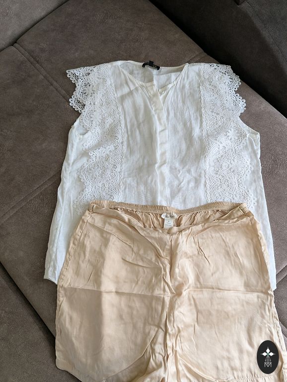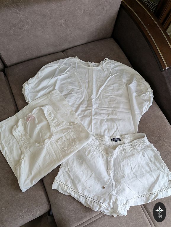 Uued teksad, väga heas korras särk. Riided on 152, aga sobivad väga hästi 140-146.