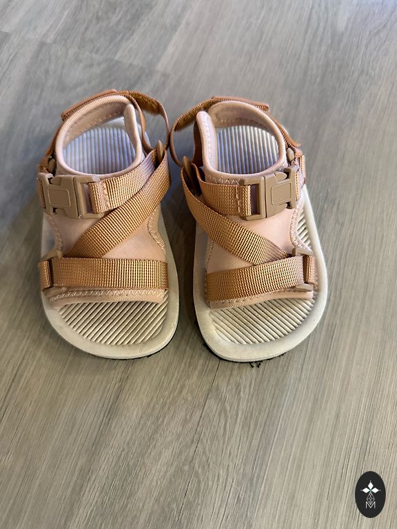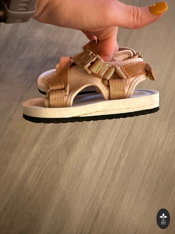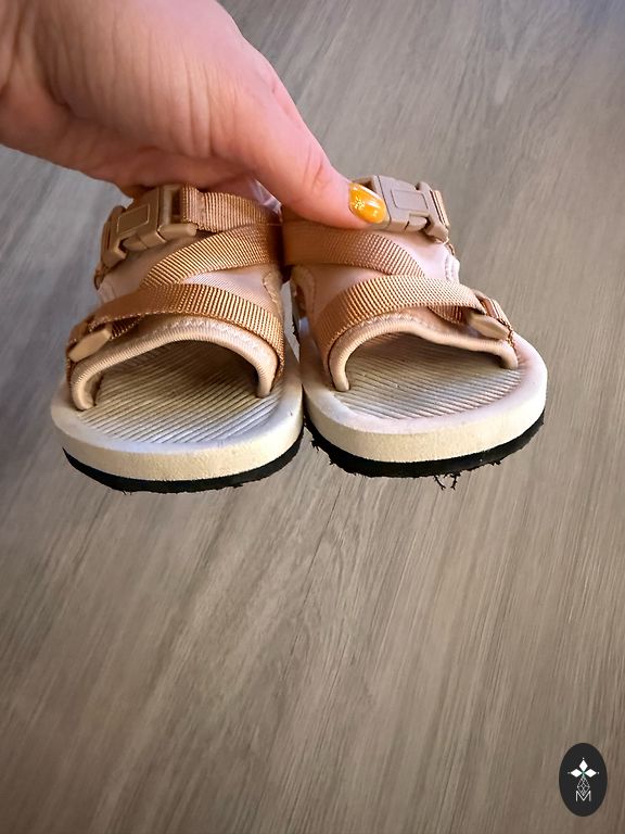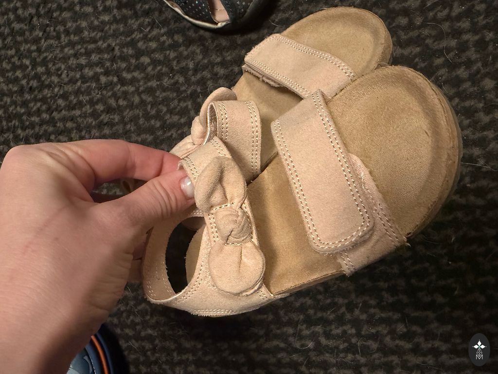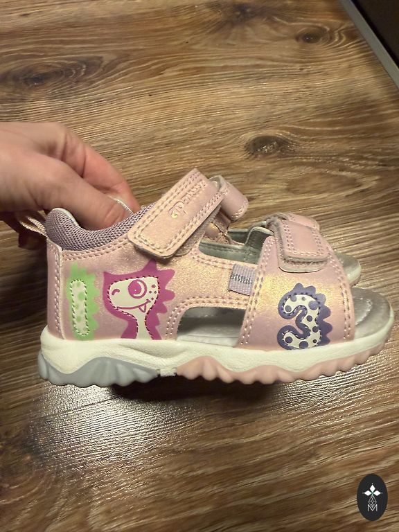 Apmēram 14.5-15 cm. No defektiem: uz rozā sandalēm uz labās kājiņas nedeg lampiņas, uz kurpītēm nedaudz atdalījies audums. Baltas sandales adidas.