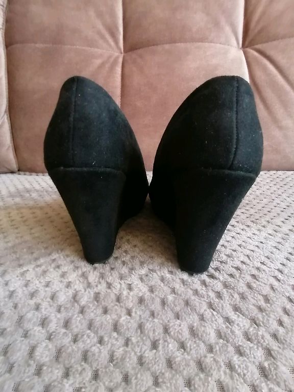 Tommy Hilfiger natural suede shoes. Upper and inside of natural leather. Insole 26.5cm, platform 1cm, heel 8.5cm. Very soft suede. On shoes 41.iz. Suitable for 41 size medium wide foot. Can try on a wider foot, because suede is super soft. There are some signs of use, but no defects as such.